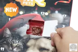 Jutalomfalat-válogatás adventi naptár formájában kutyáknak és macskáknak, 24 ínycsiklandó meglepetéssel.