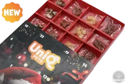 Az UNQ Pets adventi jutalomfalat naptár 24 ablaka négyféle prémium, magas hústartalmú finomságot rejt kutyáknak és macskáknak. A falatok állagukban és ízvilágukban váltakoznak, hogy a december tényleg izgalmas legyen: