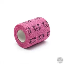 Öntapadós rugalmas kötszer, rózsaszín macska mintás, 10 cm x 4,5 m, 12 db